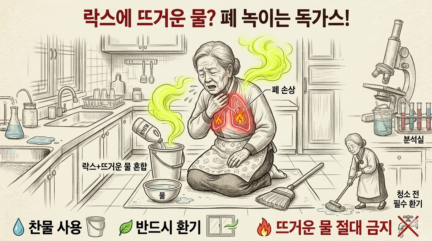 가정 내 욕실 청소 시 차아염소산나트륨(락스)과 온수를 함께 사용하는 것은 매우 위험한 화학 반응을 유발합니다. 오늘은 밀폐된 공간에서 락스 오남용이 호흡기에 미치는 치명적 영향에 대해 과학적으로 분석합니다.